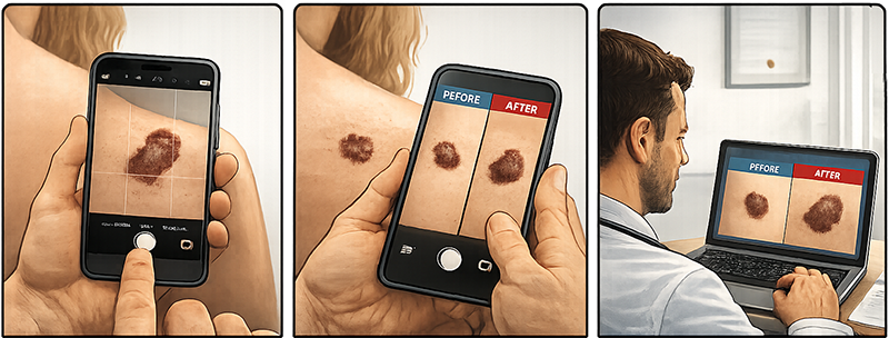 A birthmark or skin lesion is photographed clearly and sealed at capture time.